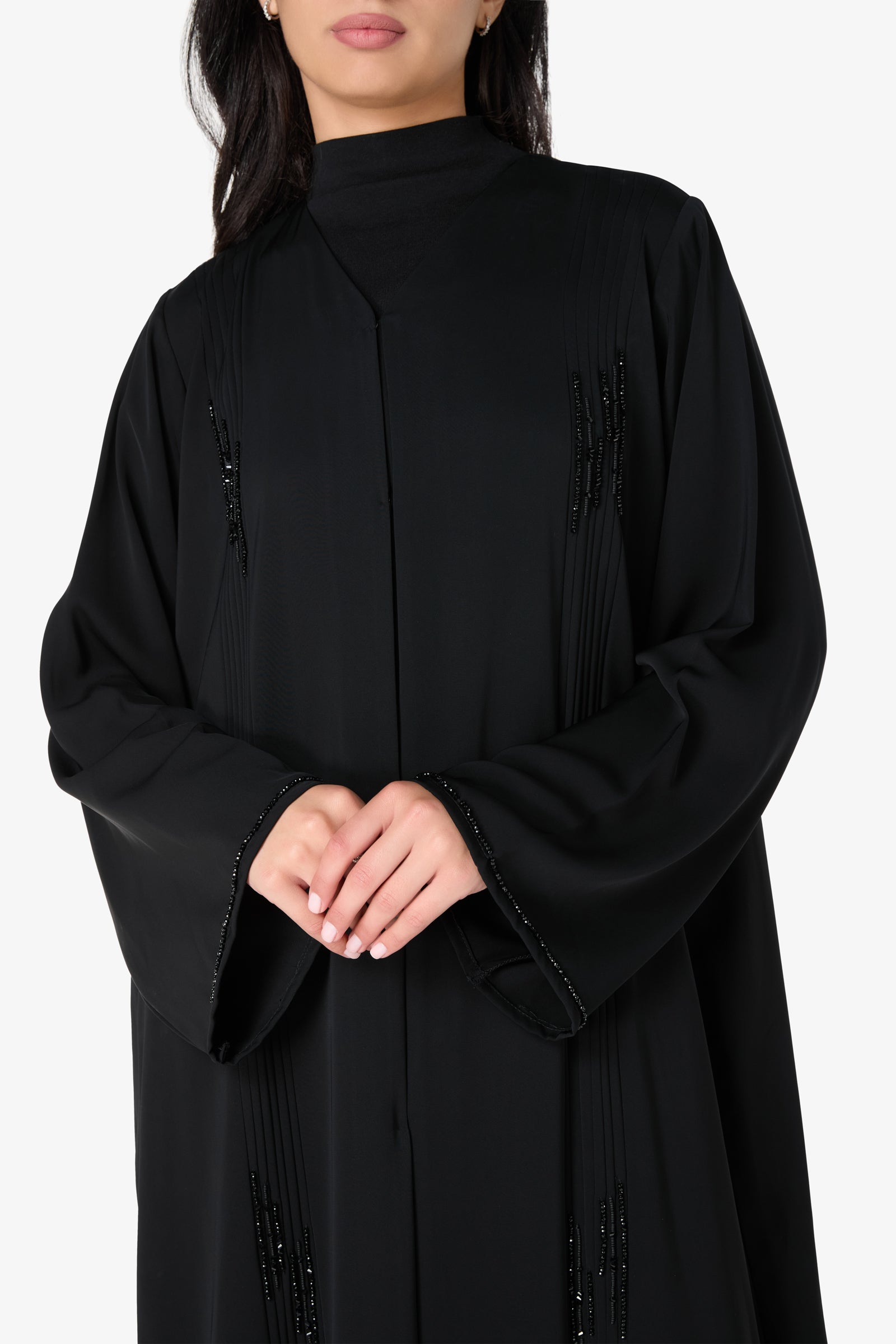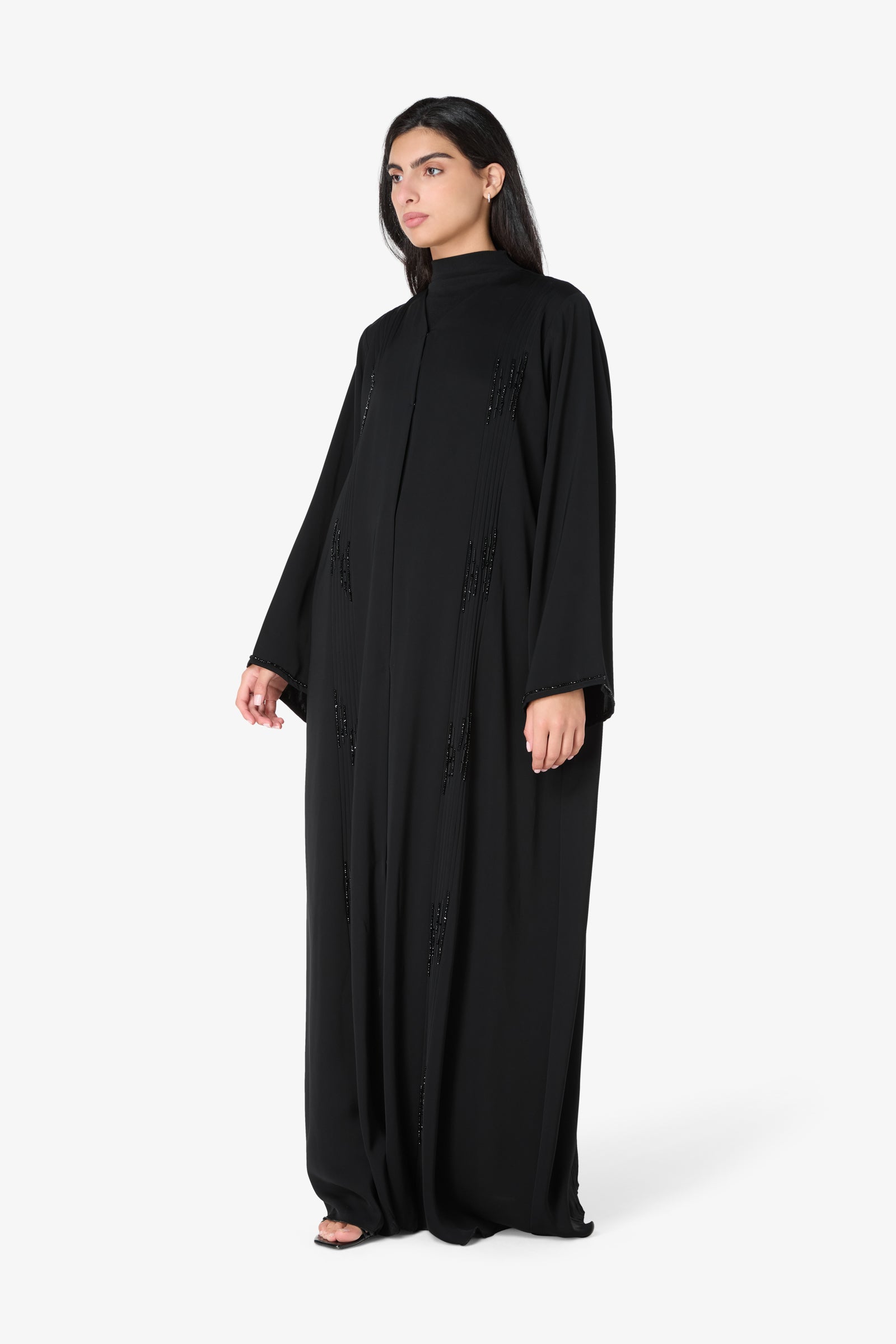 Add a touch of sparkle to your everyday look with this beautiful black abaya from AMAALEEY. It is designed to be simple, elegant, and very easy to wear for any occasion.
