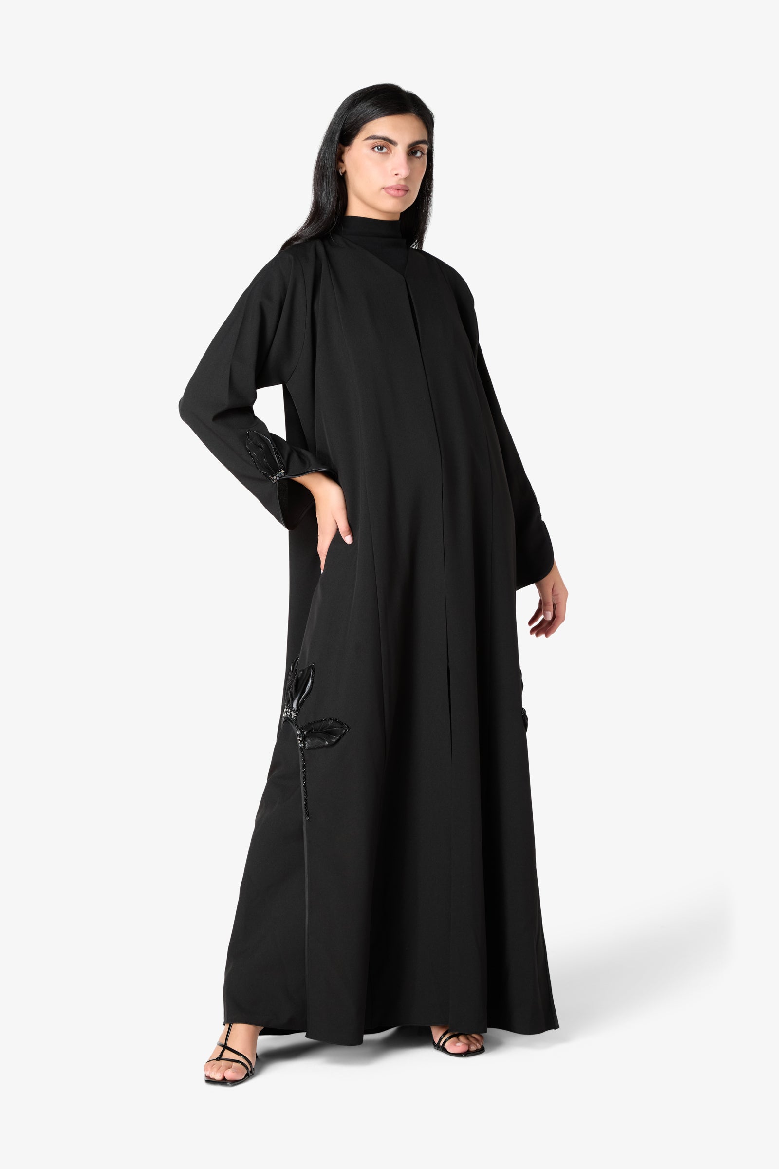 Transition through the seasons with the Moss Quartz Abaya, a piece that blends a rich, earthy palette with high-end sparkle. Set in a deep, sophisticated olive green, this abaya is designed for the woman who seeks a unique alternative to classic black without sacrificing versatility.